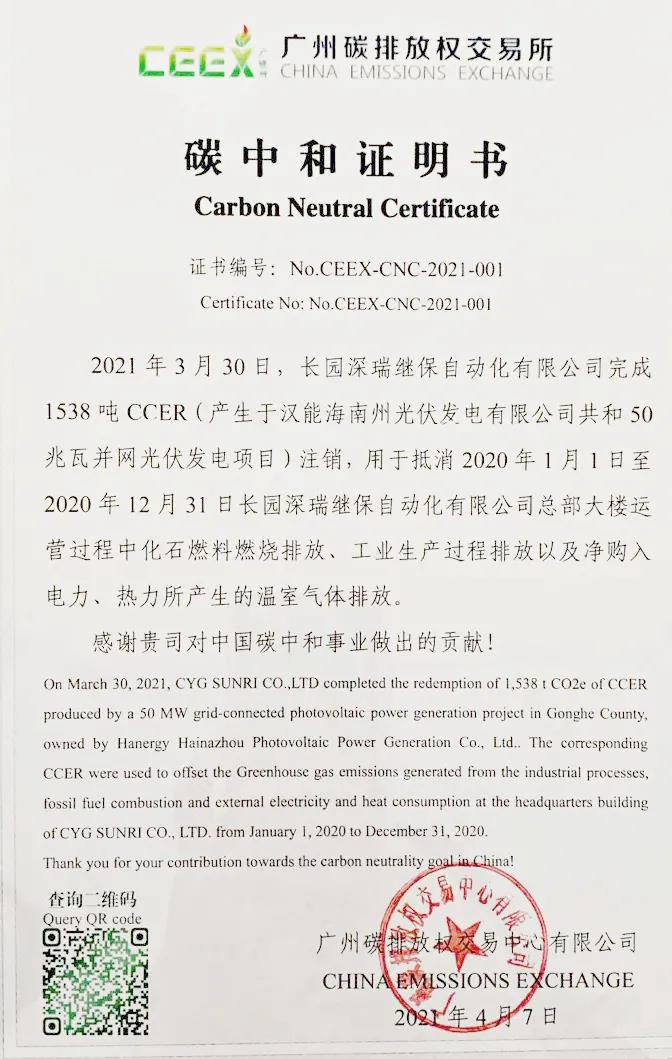 2021年初,为遵循疫情防控、响应“3060碳达峰碳中和”号召,hth.com华体会深瑞采用线上形式开展产品鉴定会,同时按照《大型活动碳中和实施指南(试行)》的相关要求,通过购买顺昌县“一元碳汇项目”的碳汇减排量,对该次鉴定会的二氧化碳排放量进行碳中和。今后,我们将继续积极中和各类展会、会议等大型活动,践行“零碳会议”理念。